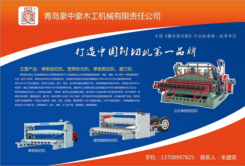 青島豪中豪木工機(jī)械有限公司,原青島木工機(jī)械制造總公司,始于1958年,具有50余年專業(yè)木機(jī)制造歷史。引進(jìn)國外先進(jìn)技術(shù)在國內(nèi)獨(dú)家推出了BB1342/1332立式單板刨切機(jī)和BB1130/1127臥式刨切機(jī),形成了從刨切、烘干、剪切、檢尺到打捆的完整生產(chǎn)線,并獲得國家多項技術(shù)專利。引進(jìn)意大利DMC公司技術(shù),推出了具有國際先進(jìn)水平的SFE/SY系列寬帶砂光機(jī)。是國內(nèi)木工家具機(jī)械行業(yè)首批通過ISO9001國際質(zhì)量體系認(rèn)證企業(yè),林木機(jī)械行業(yè)首批AA級信用企業(yè)。公司產(chǎn)品多次榮獲中國林業(yè)機(jī)械協(xié)會“向社會推薦產(chǎn)品”稱號。  公司主要產(chǎn)品為刨切機(jī)系列、烘干機(jī)系列、寬帶砂光機(jī)系列、精密裁板機(jī)、磨刀機(jī)、剪切機(jī)等六大類三十余個品種。產(chǎn)品出口到歐洲、美洲、非洲、東南亞、俄羅斯等二十余個國家和地區(qū)。公司下設(shè)經(jīng)營展廳,代理銷售國內(nèi)外各類名優(yōu)木工機(jī)械產(chǎn)品,并提供板式、實木、地板、木門生產(chǎn)線、設(shè)備配件、維修等服務(wù)。  公司致力于市場化運(yùn)作,堅持“忠誠、和諧、發(fā)奮、創(chuàng)新”的企業(yè)精神和“全心全意為用戶服務(wù),以服務(wù)感動市場”的企業(yè)文化,追求以當(dāng)代先進(jìn)的科技成果來實現(xiàn)產(chǎn)品的信息化、數(shù)控化,致力于打造中國刨切機(jī)第一品牌。信守用戶永遠(yuǎn)是對的,奉行精益制造是為民族振興,為實現(xiàn)人生的價值和更好的生活,為中國木工機(jī)械行業(yè)的發(fā)展而多做貢獻(xiàn)。